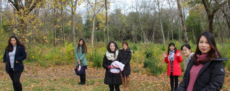 ESL students enjoy the colourful Fall leaves during our walk in the woods together. Red Toyotas seem to be popular among our students!From the Middle East and Japan, friendships are found.